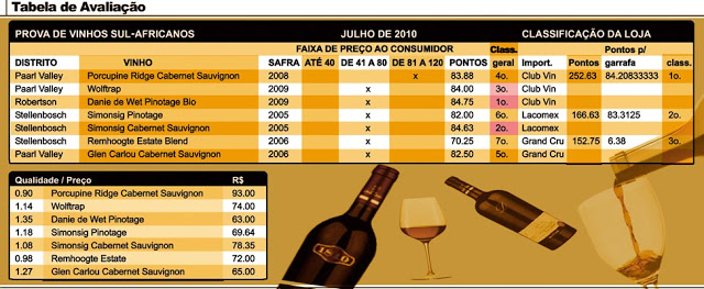 Façam seus testes, leitores e vejam se concordam com nossos degustadores. Se possível, lá mesmo, no país das vuvuzelas. Sem elas, claro. Pois daí vai dar para ouvir seu tim, tim. Brinde à vida!