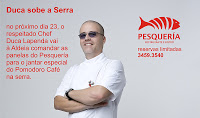 O Chef Duca Lapenda, do Pomodoro Café, estará comandará as panelas do restaurante Pesquería, em Aldeia, no próximo dia 23, durante um jantar reservado para 95 apreciadores, sob reserva antecipada.