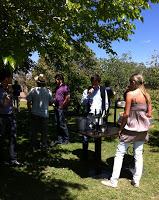 Ao chegar à vinícola, recebemos algumas informações sobre a sua história e produção e depois nos dirigimos para um belo gramado ao ar livre onde pudemos degustar alguns vinhos e conversar com representantes e produtores das bodegas Hacienda del Plata, Trapiche, Luigi Bosca e Mendel, das quais eu falarei um pouco mais nos próximos posts da série “as boas do vinho argentino”.