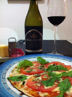 Como nós andamos numa eterna dieta aqui em casa, resolvemos preparar uma versão “mais light” de pizza, feita na frigideira, com um vinho igualmente leve: um Pinot Noir californiano.