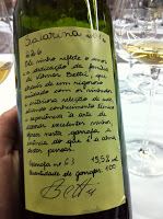 OS VINHOS – Bettú usa de 50% a 60% das uvas que cultiva na produção de seus rótulos. A produção é de 5 a 10 mil garrafas por ano, dependendo da safra. Seus vinhos são diferentes. Os brancos bem dourados e os tintos com tonalidade levemente marrom. Os aromas exalam elementos distintos dos encontrados na maior parte dos vinhos daquela região: abacate, terra, goiaba. Frutas vermelhas muito pouco. E tem mais: brancos que lembram conhaque, cortes que não são revelados nem sob tortura, nomes esquisitos que só ele sabe o que significa (como o “Salarina” da foto ao lado).