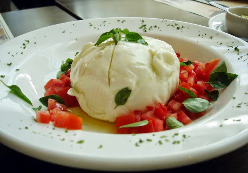 Na nossa experiência de ontem, começamos com uma burrata tradicional (foto abaixo),