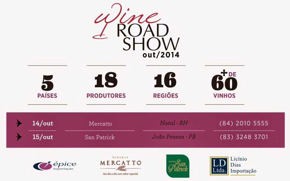 Natal, e o outro amanhã (15), em João Pessoa. O Wine Road Show vai reunir produtores
